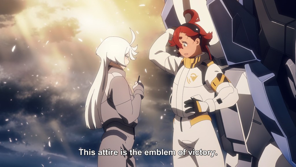 Gundam always delivers when it comes to unique designs and scenery. Honestly, there’s a lot less fights in this series compared to previous iterations. This is disappointing because the glimpses of fights you do see are distinctive and beautiful.